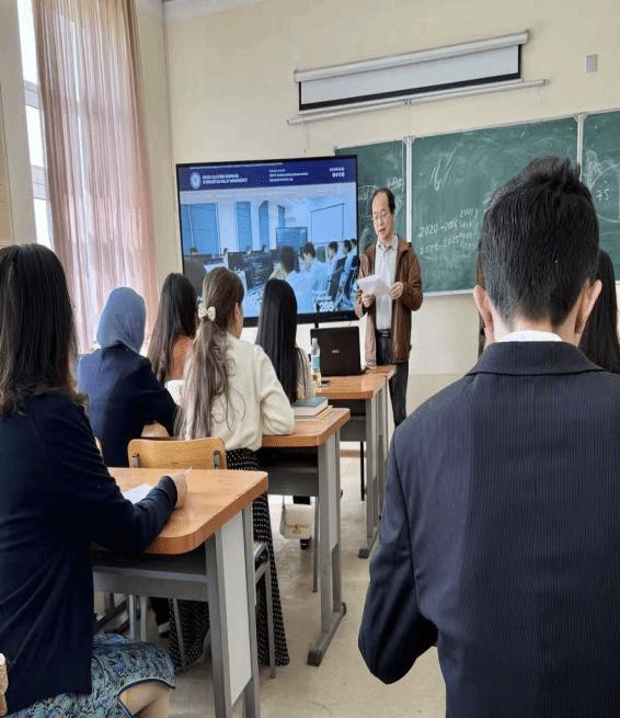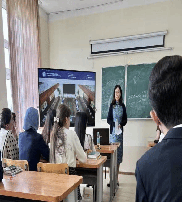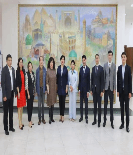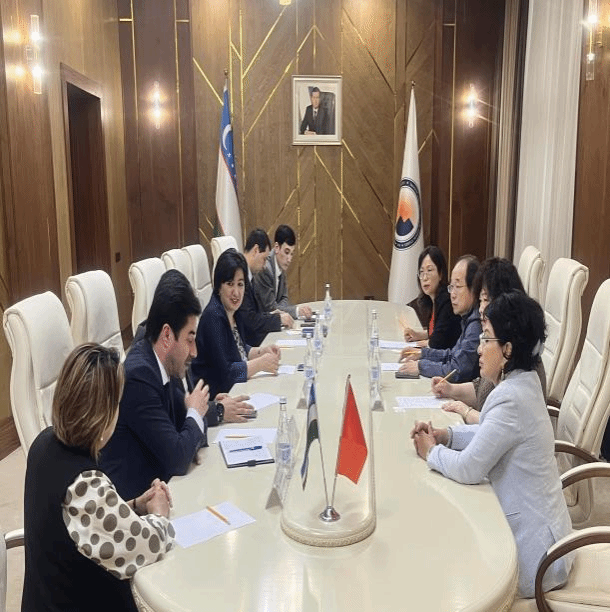 乌兹别克斯坦米尔扎•兀鲁伯民族大学副校长拉夫尚·穆苏尔马诺夫(Ravshan Musurmanov)、国际交流办公室负责人贾甫伦别克·马达托夫(Javlonbek Madatov)、人文社会科学系教授萨伊达· 阿戈扎姆霍德热耶娃(Saida Agzamkhodjaeva)等热情接待了代表团一行。双方就未来两校合作意向进行了有效沟通。
