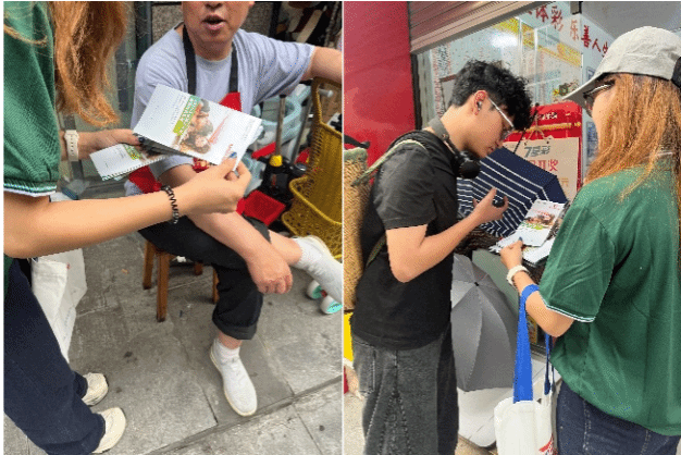 第一站 四川省阿坝藏族羌族自治州金川县 7月19日:街头走访听需求,精挑互动奖品备实践 首站抵达金川县,先锋团成员带着推普宣传手册走上街头,向过往村民介绍活动内容,同时了解当地人的普通话使用习惯。成员们边询问边记录,重点关注“一老一少”人群、“n”和“l”的发音混淆以及小学生日常用语语义误用等习惯问题。同时,为增强推普实践的趣味性,团队根据调研结果增设有奖互动环节,给老年人准备了垃圾袋、牙刷、抹布等日用品,给小学生挑选了橡皮、星球杯、贴纸等玩具零食等,满足不同群体需求,为接下来的互动埋下温馨趣味的伏笔。