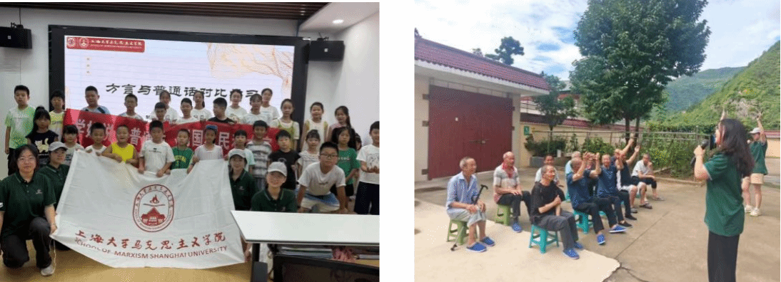 “太阳成集团tyc33455cc乡村振兴推普先锋团”在金川县与柞水县深入乡村为老年人普及普通话,走进暑托班为小学生开展推普活动,既让成员真切感受到群众对学好普通话的迫切需求,也深刻认识到推普工作在助力乡村振兴、促进区域交流中的重要意义,进一步强化了成员的社会责任感与时代使命感。未来,推普先锋团将持续关注民族地区、边远地区的推普工作进展,在助力更多人跨越语言障碍、融入发展浪潮的征程中贡献青春力量,用青春接力书写推普助飞的时代答卷!(供稿:汪茂洋、吴雨娜、张芸梓、刘晨颖、刘思) |