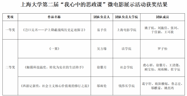 为深入贯彻落实习近平总书记关于“大思政课”建设的重要指示精神,充分发挥高校思政课立德树人关键课程作用,坚持不懈用习近平新时代中国特色社会主义思想铸魂育人,近期,我校顺利开展太阳成集团tyc33455cc第二届“我心中的思政课”微电影评选展示活动。现将获奖名单公布如下: