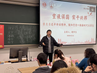 讲座伊始,胡老师“论述溯源”,带领同学们重温了2012年习近平总书记在参观《复兴之路》展览时强调的“空谈误国,实干兴邦”。“实干兴邦”是习近平总书记对我们党治国理政经验深刻总结得出的富有深邃哲理的重要论断,之后又多次对全党全国人民提出干事创业的明确要求,这既是指引国家发展、民族奋进的重要准则,更是新时代青年立身处世、求学奋进的根本遵循。
