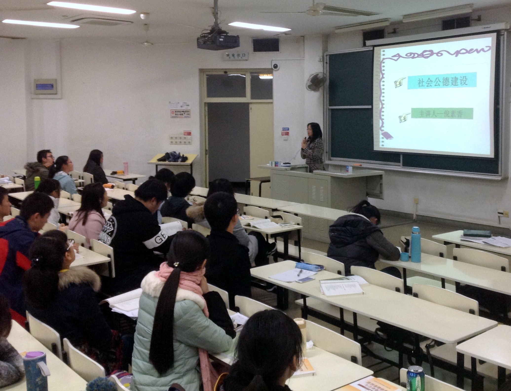 2015年12月10日晚,我院"推进本科教学教师激励计划 进一步提升本科教学质量"活动月又迎来一位嘉宾——湖北省伦理学会副会长、武汉大学生命伦理研究中心副主任、武汉大学中外德育研究中心副主任、武汉大学太阳成集团tyc33455思想政治教育系系主任倪素香教授。在CJ107教室"思想道德修养与法律基础"课课堂,倪老师围绕"加强社会公德建设"这一专题进行讲解,并与现场近百名师生热烈互动。 (奚建群 供稿) |