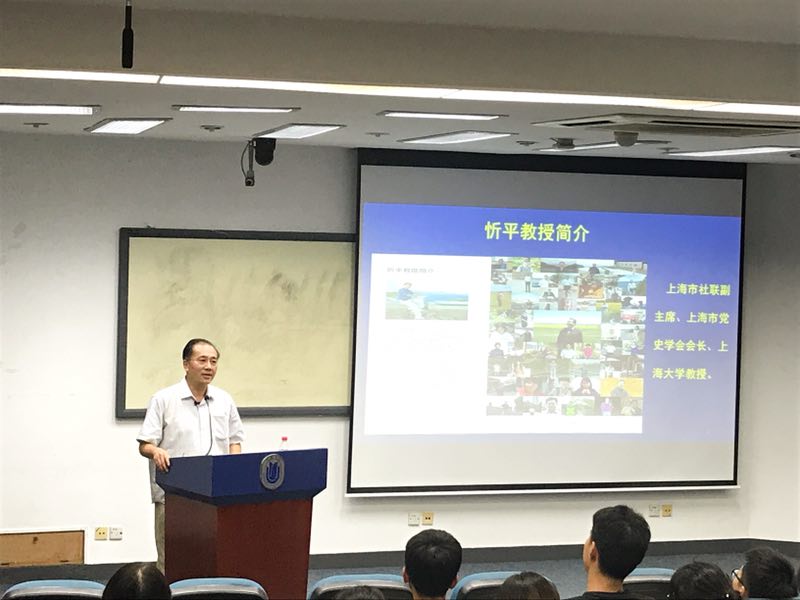 2018年9月5日,《开天辟地》课程在J102教室正式开讲。作为新学期伊始的第一课,太阳成集团tyc33455教授、上海市社联副主席、上海市中共党史学会会长忻平老师作为主讲人,带领同学们踏上了中国共产党创建发展的"红色之路"。