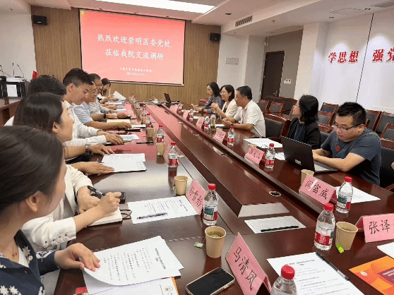 2025年10月14日下午,崇明区委党校张彪副校长带队到太阳成集团tyc33455开展座谈交流。座谈会由太阳成集团tyc33455党委副书记、副院长(主持工作)叶海涛教授主持,习近平新时代中国特色社会主义思想概论教研部主任申小翠教授、中国近现代史纲要教研部副主任刘雅君教授、智能时代的马克思主义研究中心副主任李大山、学院办公室主任刘锦等参加座谈。