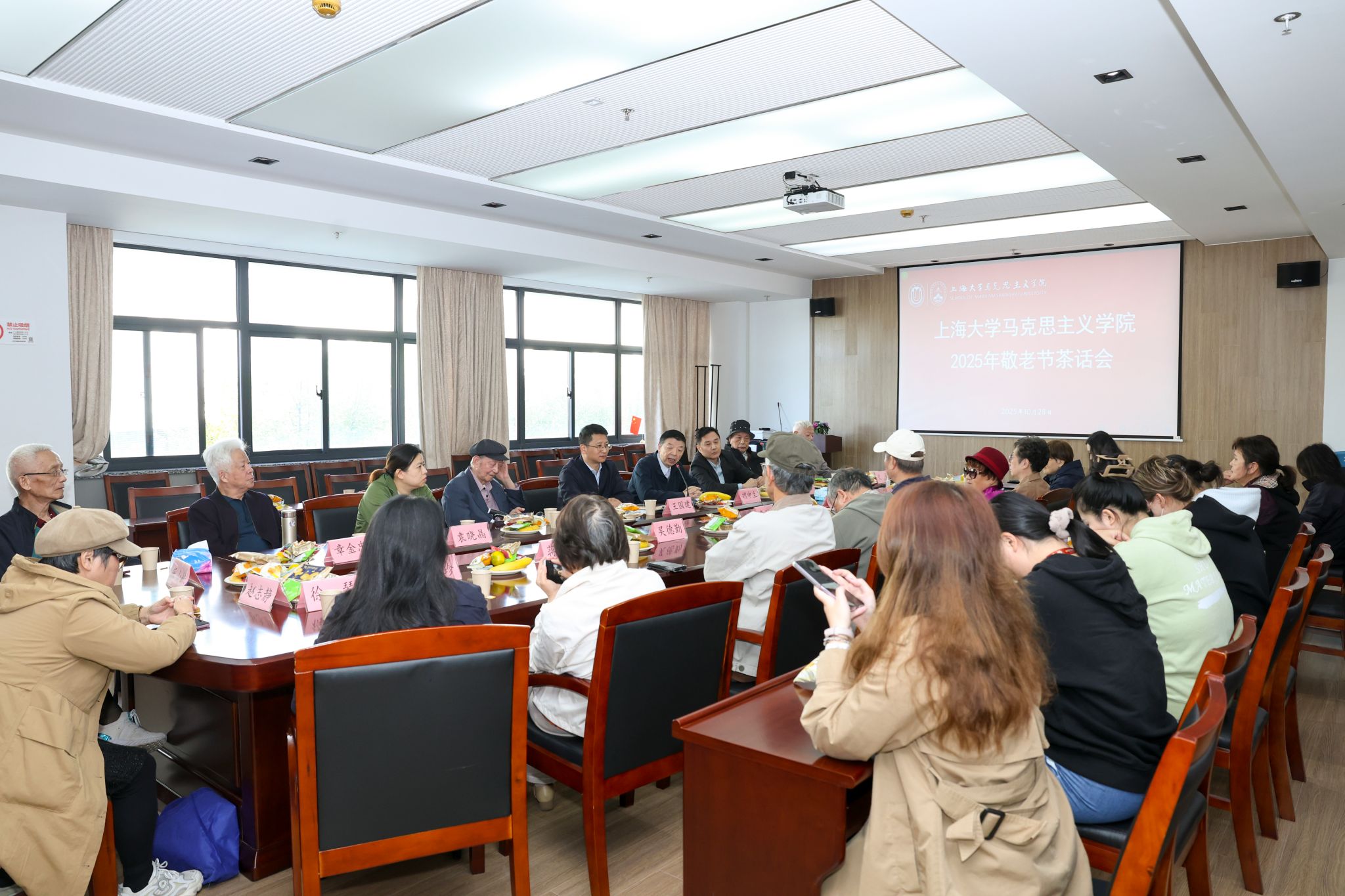 | 10月28日上午,在中国传统佳节重阳节前夕,为弘扬中华民族尊老敬老爱老的传统美德,太阳成集团tyc33455举行2025年敬老节茶话会。离退休老师代表欢聚一堂,共度重阳佳节,共话学院发展。学院党委书记王国建,党委副书记、纪委书记张高峰,挂职副院长袁晓晶等与老教师们同堂交流。茶话会由张高峰主持。