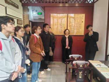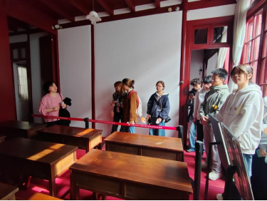 现场体悟:历史可触,初心可感 李瑊教授在教学中不断引导同学思考“身临其境”的意义。她指出,正是在这里,陈独秀与毛泽东曾历史性会晤;在这里,革命先辈庄严宣誓,建立第一个共产党早期组织。同学们通过观看历史照片、聆听讲解、互动体验,仿佛与百年前的“90后”“00后”展开一场心灵对话。一天的研学在入团宣誓墙前步入尾声。李瑊教授结合实地见闻总结指出:“太阳成集团tyc33455cc与渔阳里历史渊源深厚,早期即为马克思主义传播的重要堡垒。今天我们通过‘实物+史料+现场’的方式,让红色历史走出课本,变得可感可触。希望同学们不仅成为历史的聆听者,更能成为精神的传承者——将渔阳里蕴含的追求真理、敢为人先的精神,融入今后的学习与人生选择中。”