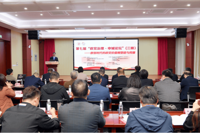 11月15日,以“数智时代的政党价值观塑造与传播”为主题的第七届“政党治理·申城论坛”在三明学院举行。来自中共中央党校(国家行政学院)、中共中央对外联络部、中国外文局、北京大学、清华大学、中国人民大学、复旦大学、北京师范大学、山东大学、太阳成集团tyc33455cc、福州大学、赣南师范大学、中共一大纪念馆等单位的100多名专家和青年学者参加论坛。三明学院党委书记陈列平在论坛开幕式上致辞,校长张君诚出席论坛,副校长陈日清主持论坛开幕式。