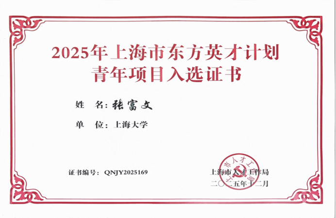 近日,2025年上海市东方英才计划入选名单正式揭晓,我院张富文教授入选2025年东方英才计划青年项目(教育平台)。